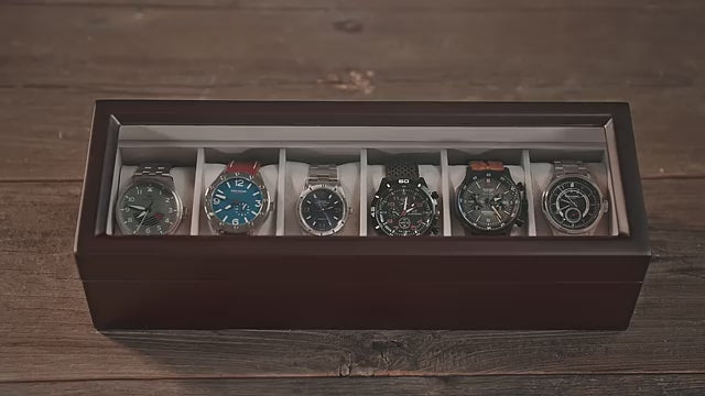 Organize and showcase your watch collection in style with this elegant 6-slot watch display box. Designed for watch lovers and collectors, this luxurious storage case features a sleek black wooden finish,